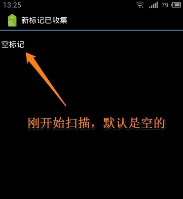 1、剛開始你把NFC標(biāo)簽放在手機(jī)背面,手機(jī)掃描的是空的,因為你還沒有把數(shù)據(jù)寫入標(biāo)簽里噢。