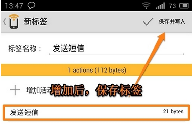 確定之后,我們 點(diǎn)擊“保存并寫入”,然后掃描一下NFC標(biāo)簽。